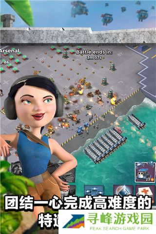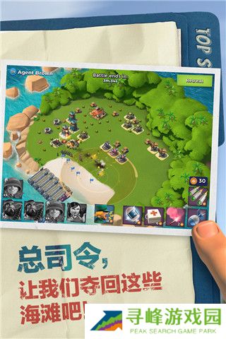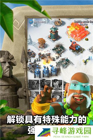 1、【资源抢夺战】从沙滩指定范围内登陆。然后在海面上有战舰提供**、医疗支援,同时还能释放引**进行实时打击目标指挥。至于坐着登陆艇成功冲上岸的士兵,全自动战斗,会优先攻击最近的建筑,这时就需要你引导他们集中火力,打掉敌方防御工事先。最后,只要摧毁敌人的司令部就能引爆敌人整个基地,获得胜利,拿到战利品。2、【神秘的热带群岛】绿色的森林小岛,逼真的海洋世界,3D俯瞰式的游戏画面让你似乎身临其境。随风而动的树木光影交错、不断流动的瀑布、天空飞翔的海鸥、有浅变深的海水不停的冲打着沙滩,这些画面细节的处理已经让这款游戏大胜一筹了。卡通风格的海岛画面和人物造型带给玩家几分的小清新,同时也更加符合多个年龄段玩家的口味。3、【手指上的战场】玩家在海岛上建造自己的民房、兵营、炮塔、采石场、木材场等建筑设施,并为这些设施装备机枪、大炮、火箭发射器等武器装备,足以让玩家正真的创造属于自己的海岛世界。训练士兵、建造舰艇发动战争让大家时刻体验惊险刺激的战争世界。玩家在游戏中需要由浅入深,由简单到复杂,逐步建立起自己的强大部队,还要精心策划排兵布阵,才能取得一场接一场海岛争夺战的胜利。4、【攻打神秘BOSS】在你美丽的岛屿王国的另一端,还有一些邪恶的黑暗卫队在扰乱部落的生活,指挥我们的**,打败这些入侵者,BOSS哈曼莫的司令部分散在地图的各个角落,击败他们能获得十分丰厚的资源、水晶、勋章奖励。