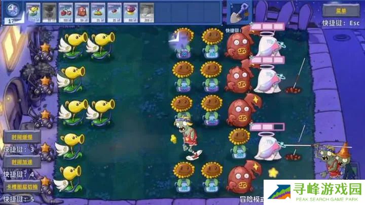 要点2:三管豌豆不管有没有敌人自动总在攻击,推荐放在2、4行,靠后