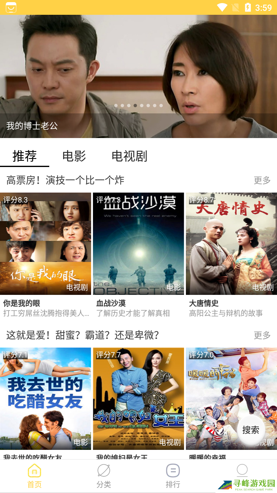 3、回到主页,点击页面上方的搜索框搜索你想要的电影