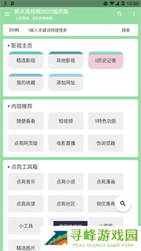 2、拥有视频的主页、备选主页、视频解析、电视频道、直播平台以及资源搜索和公告栏,这么人性化的主界面设计;