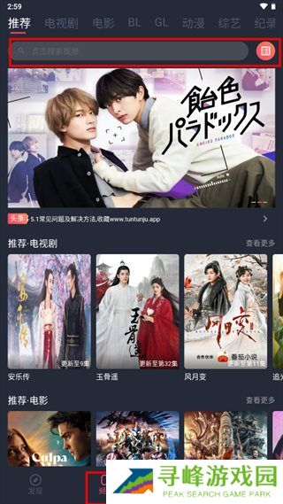 1.在“频道”页面的搜索框中,搜索自己想看的剧或者电影、综艺
