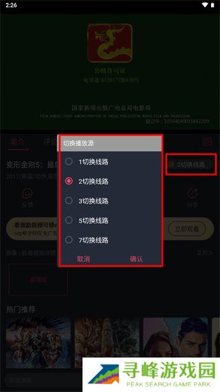 3.如果加载速度过慢,可以点击线路切换,点击“确认”即可