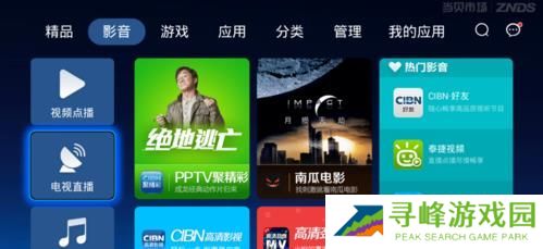 2、打开后,进入影音版块中的电视直播,里面聚合了TV端所有直播应用