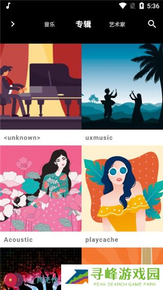 5、这是款全屏式的音乐盒,里面的界面设计也是非常的简洁的,用于本地的音乐播放;