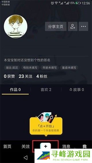 1、打开cilicili,点击中间的+进行拍摄视频,如下图所示: