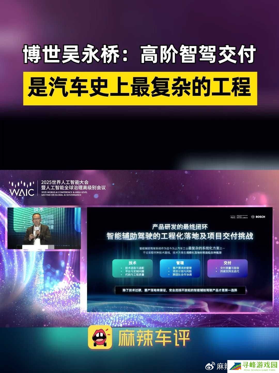 吴永桥还称,高阶智驾技术的工程化落地和交付,是汽车历史上最为复杂的系统化工程,没有之一。很多企业、主机厂和供应商,都倒在工程交付和大规模量产上,许多项目无法落地和交付。因为这么复杂的工程交付,需要脱几层皮,比讲 PPT 难上万倍。所以工程化交付和落地,是决定智驾能否走向未来最核心的要素,并非技术本身。