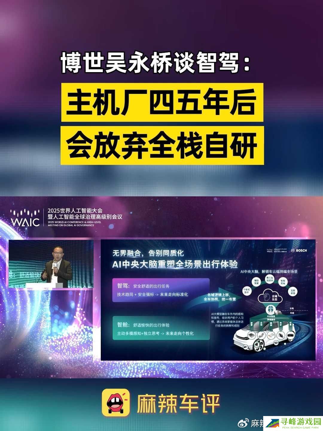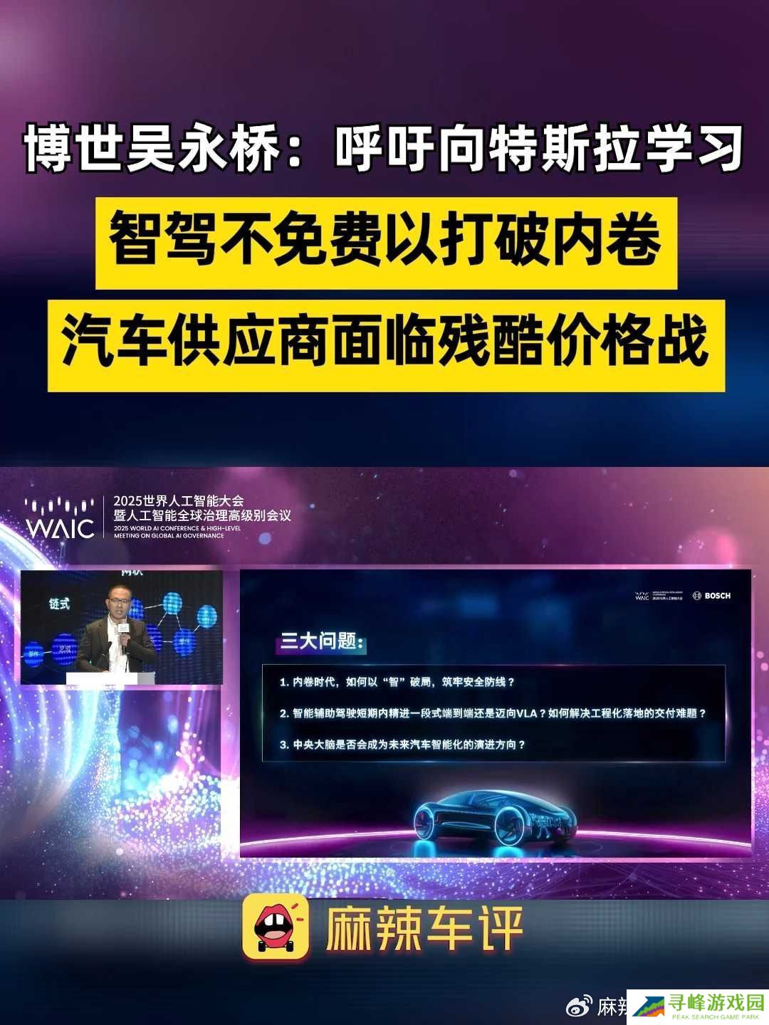 本站 7 月 28 日消息,据麻辣车评报道,博世智能驾控中国区总裁吴永桥 7 月 27 日在 2025 世界人工智能大会上表示,根据今年 6 月国家统计局发布的官方数据,今年 1-5 月份中国汽车工业营收增长 7%,乘用车销量增长 14%,但是整个利润下滑 11.9%。