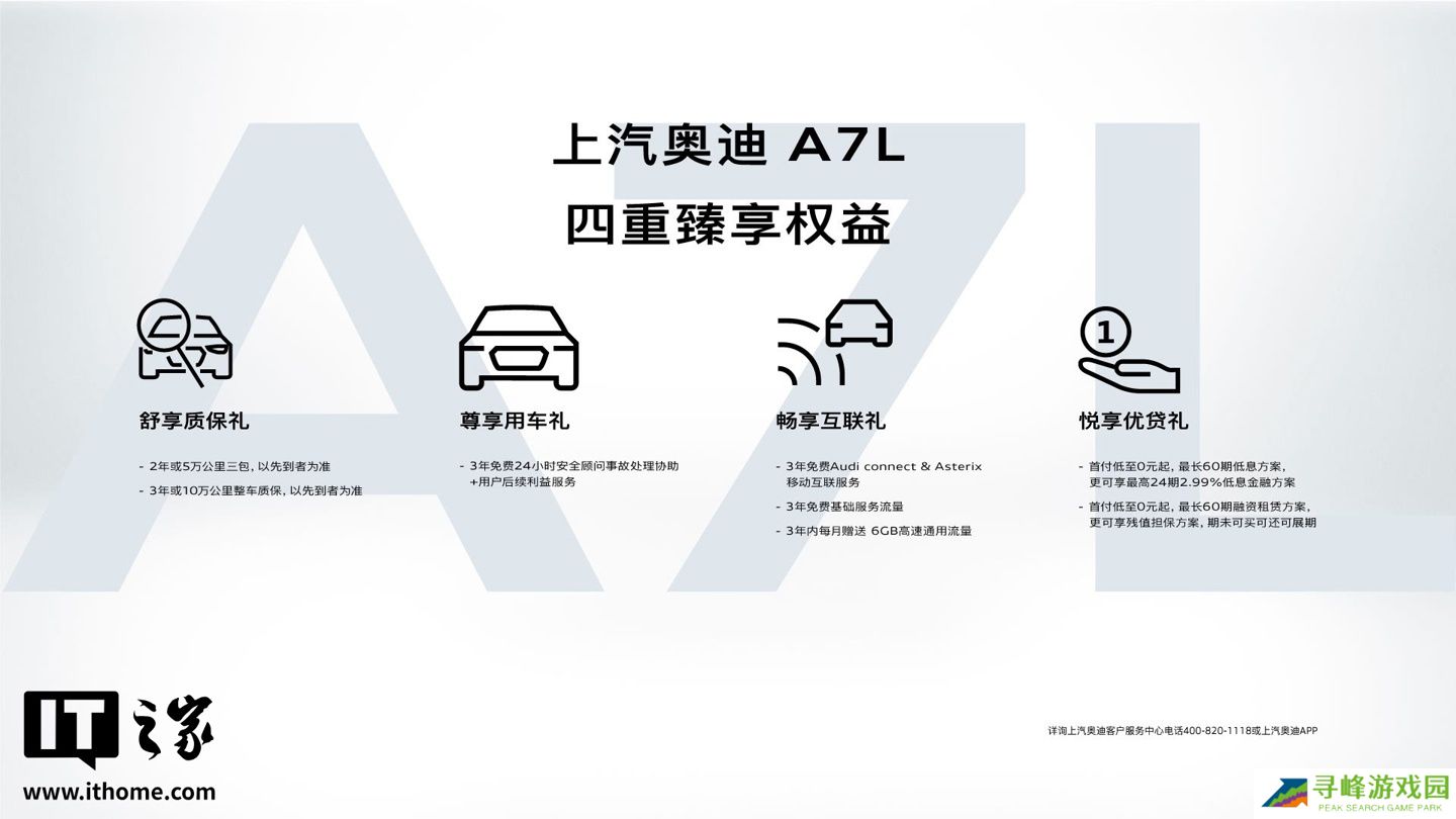 本站 6 月 10 日消息,2025 款奥迪 A7L 已上市,新车共推出 7 款车型,售价区间为 41.87 万元至 66.62 万元,与老款车型保持一致。与此同时,购车用户还可享四重臻享权益,包括 2 年或 5 万公里三包、3 年或 10 万公里整车质保、3 年免费 24 小时安全顾问事故处理协助 + 后续利益服务、3 年免费基础服务流量以及最低 0 首付,最长 60 期低息金融方案等。