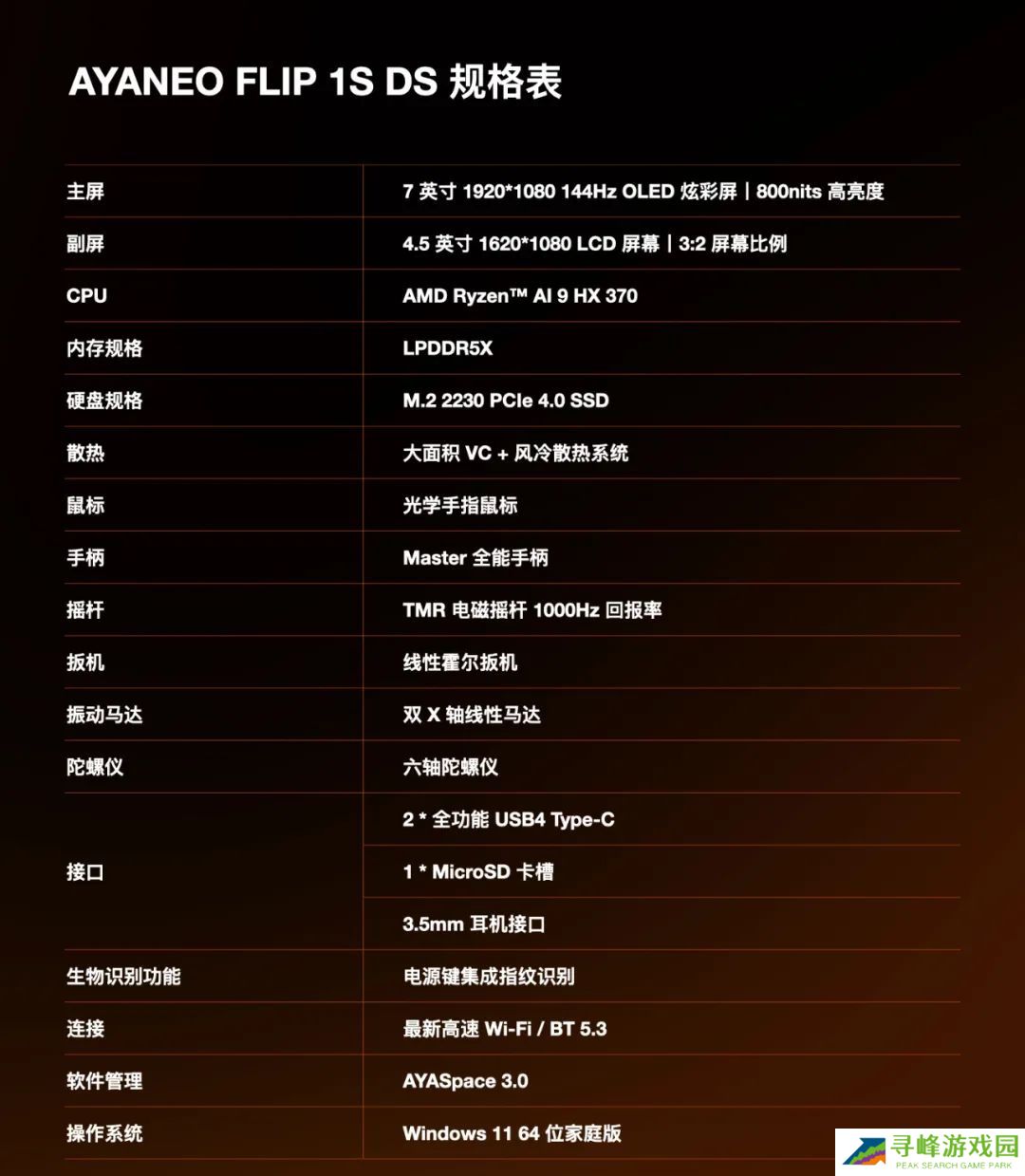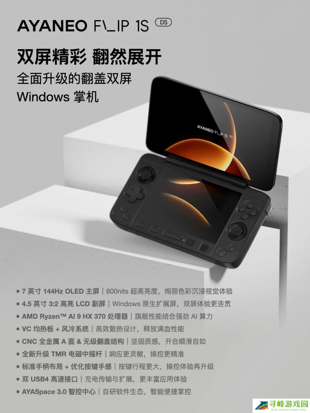 本站附 AYANEO FLIP 1S DS 掌机亮点、规格表如下: