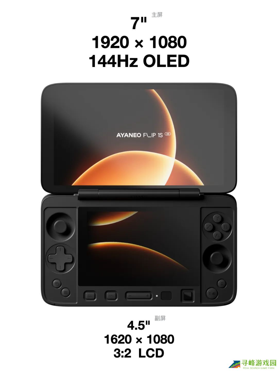 据介绍,AYANEO FLIP 1S DS 掌机配备7 英寸 OLED 主屏幕,分辨率 1920×1080,支持 144Hz 高刷新率,全局最高亮度达到 800nits。新机副屏为 4.5 英寸 3:2 比例 IPS 原彩屏,分辨率 1620×1080,亮度达 550nits。