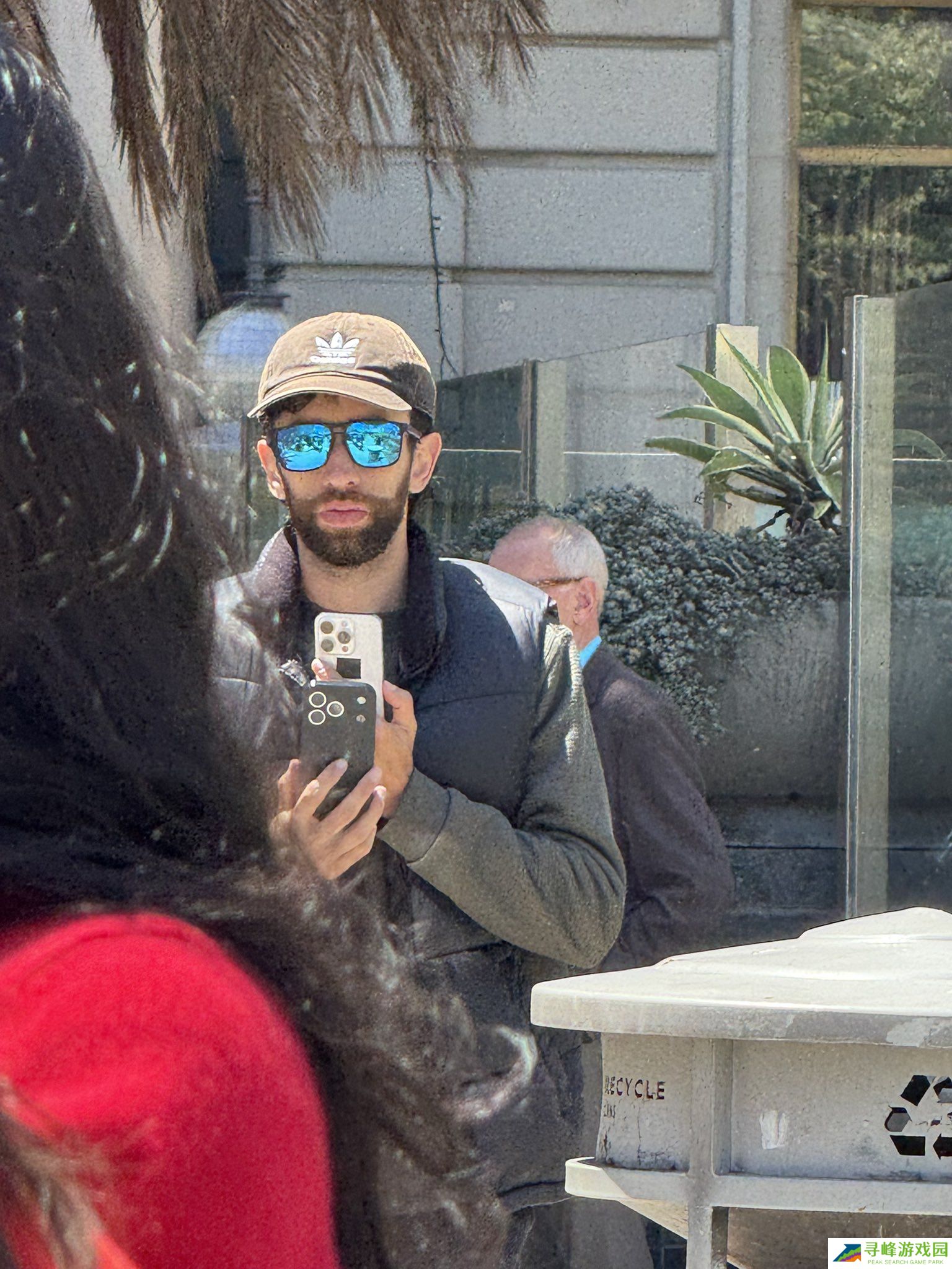 其中一张照片中,一个戴反射太阳镜的人手里拿着一个看似被包裹在厚黑色保护壳中的 iPhone,这个壳可能是用来在公共场合伪装 iPhone 17 Pro 的设计。他们还拿着一款背面贴有标签的 iPhone 16 Pro,这个标签可能隐藏着数据矩阵码,让苹果公司能够追踪用于开发的员工手机。