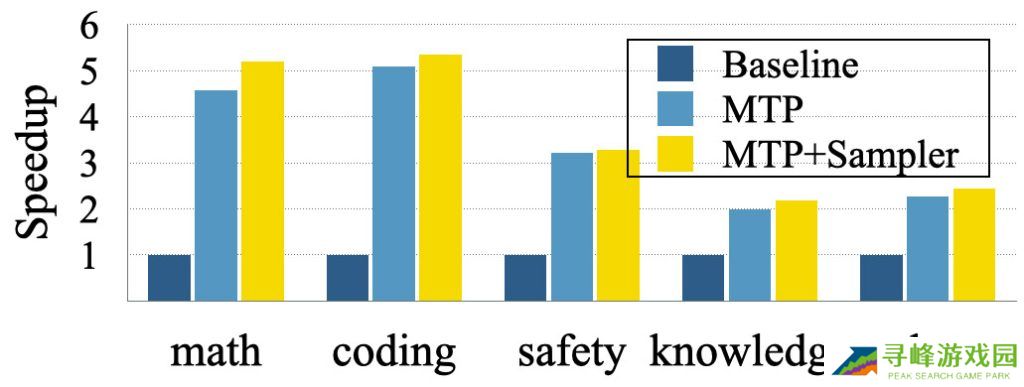实验基于开源模型 Tulu3-8B 进行,苹果训练其最多推测 8 个后续 token。结果显示,在问答和对话等通用任务中,响应速度平均提升 2–3 倍;在代码生成、数学推理等结构化场景中,提速可达 5 倍。