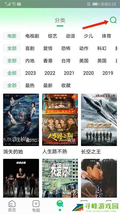 2、在找片页面中,点击右上角的【放大镜】图标开始进行搜索;