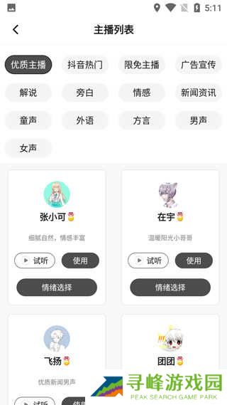 1、平台内提供多样化的主播音色供用户自由选择,满足个性化需求。