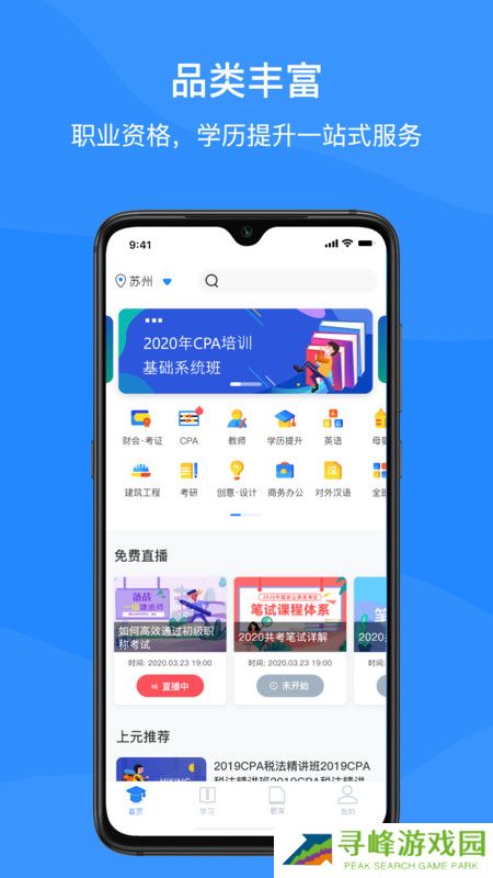 上元教育手机版是一款以职业资格考试为主的线上教育培训软件,覆盖会计、建筑、设计等职业领域,以最新版本的职业考试考纲作为核心,帮助考生们精心搜集视频、题库、问答等学习资源,再搭配上辅导老师的一对一知识问答,帮助考生们解决复习备考上的难题。将授课时间控制在30分钟左右,随时暂停看老师的手写板书,跟上老师的授课进度,轻松备考复习。