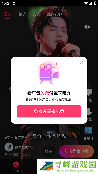 【每日更新】每日上新,一键制作属于自己的个性来电桌面。【海量主题 】收集了全网最热最火的短视频,明星、美女、网红、搞笑、动漫、、萌宠...海量来电视频任你挑选,一键设置,轻松搞定。【热门来电铃声】时下最火最热的歌曲铃声任你更换,设置自己专属的个性来电铃声。【智能搜索 】快速搜索你想要的来电视频、主题,精准定位,方便快捷。【模拟微信来电】模拟微信视频通话和语音通话,精选N种场景视频语音,助你友善脱身;【抖音热榜】流行视频与热门音乐完美结合,秀出您的个性【3D/4K超高清画质 】酷炫3D动画、超超清4K视频,手机屏幕差谨入。