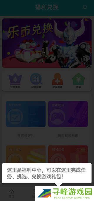 3、进入福利中心,完成任务或挑选心仪的礼包进行兑换;