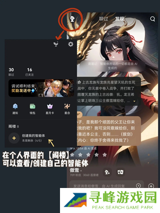 1、在个人中心的[阁楼]页面可以创建属于自己的智能体