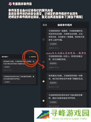 8、事件簿会自动记录你们的对话内容,重启后数据会被清除,但已绑定的事件羁绊不会丢失。一旦解除绑定,相关记录将无法恢复