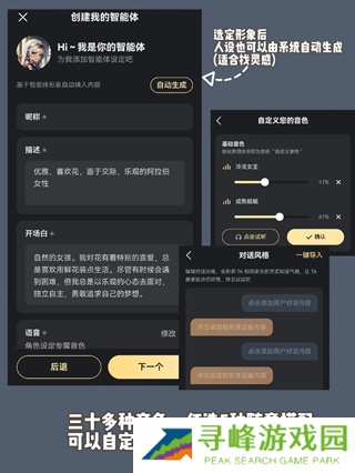 2、提供三十多种音色选择,可自由组合五种不同风格,打造个性化对话方式
