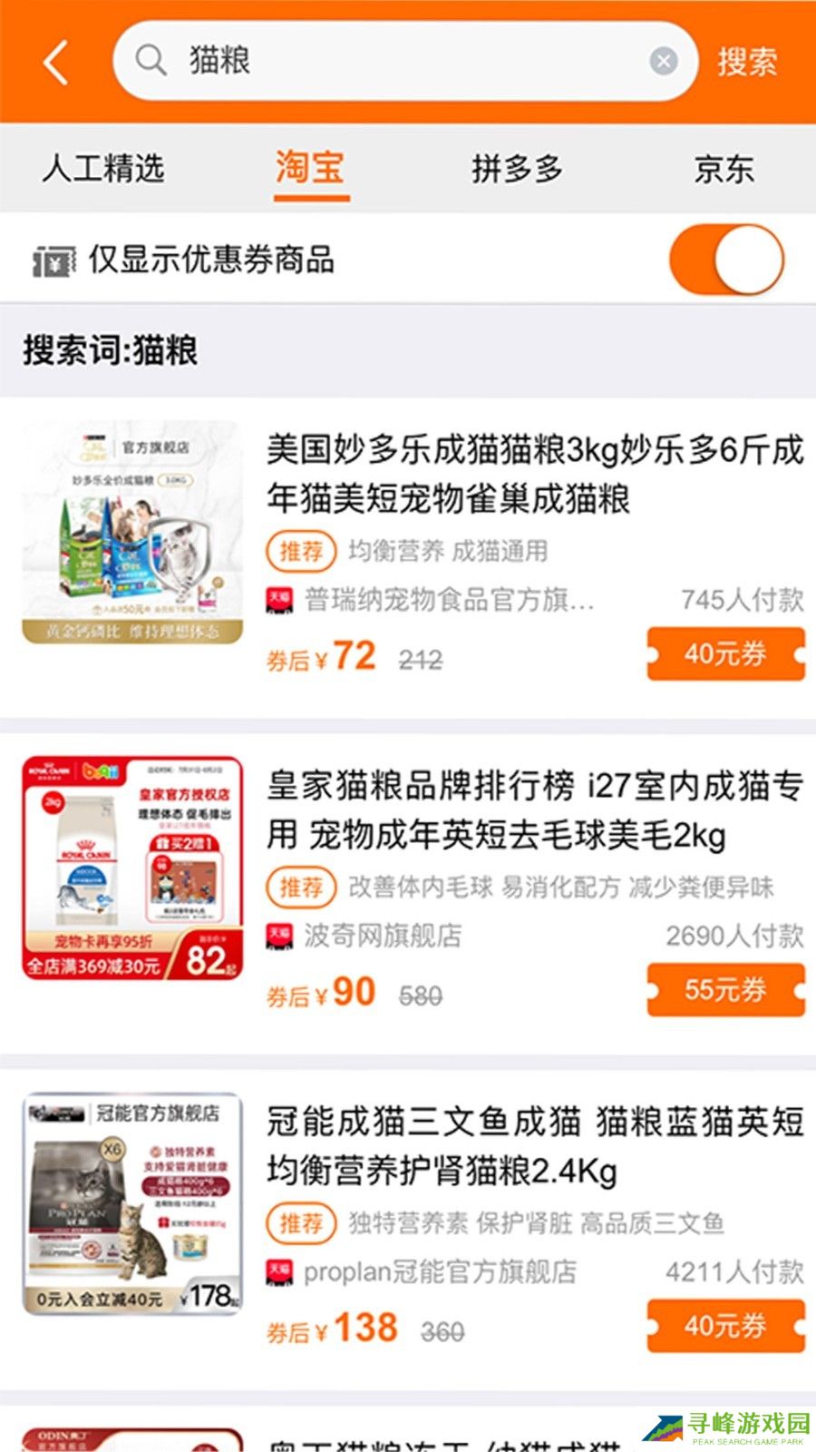 2、所有养猫商品都是有相应的分类的,查找商品更方便,货比三家后再购买。
