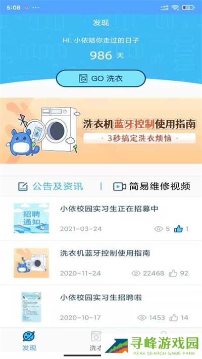 小依洗衣机是一款主打自助洗衣服的软件,适用于大学、公司集体宿舍等场景,平时因为学习、工作原因不想手洗衣服的话,不妨花点小钱用寝室内的公共洗衣机,全程掌上操控,让你体验到更便捷的智慧洗衣生活。