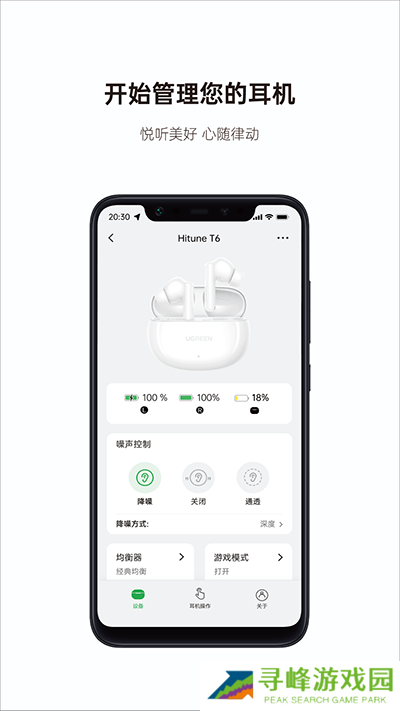 绿联耳机专为绿联品牌耳机打造,轻松管理已连接的绿联蓝牙耳机,自由调整参数设置,音量、音效、控制都可以定制,以达到最佳的听觉体验。找不到而耳机时,借助定位查找功能来定位耳机的GPS位置,减少了因耳机丢失而带来的不便。