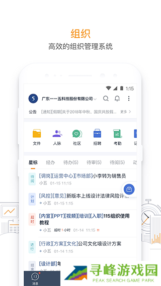 115组织也被叫做115管理,这是一款以企业、团队、协会等组织人员沟通为核心的人员管理系统,无论是请假在家还是出差到外地,随时都可以帮助企业管理员实现人员的日常工作分配,优化企业内部的工作协同效率。可以与与企业服务器本地的办公系统集成,减少企业额外在软硬件办公方面的资金与人力投入,最大程度提升人员管理的效率。