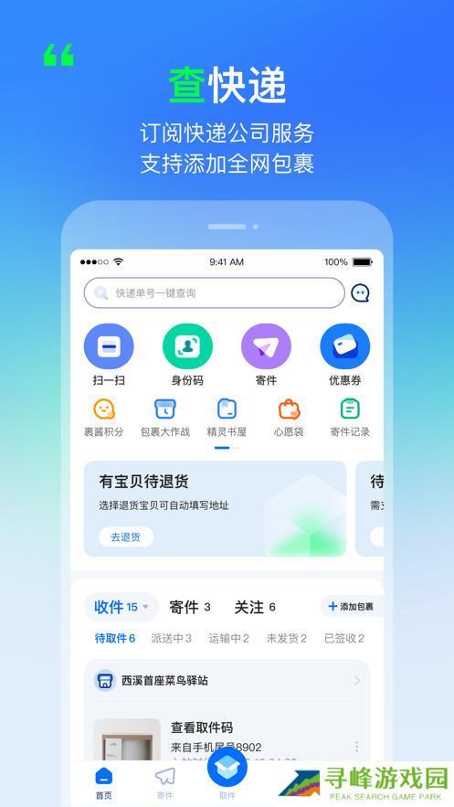 1、菜鸟掌柜app具备快递单号管理能力,同时提供便捷的手机寄件服务。