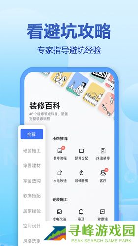 2、严选装修攻略和装修教程,学会走线布局、水电改造、建材挑选,家装少走弯路。