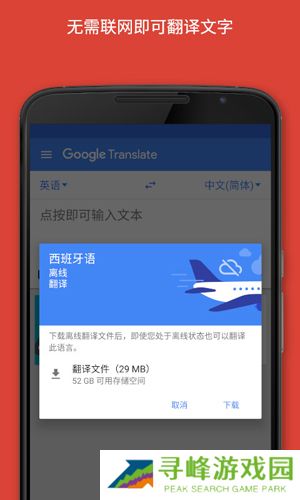 谷歌翻译免费版也被叫做google翻译,它能够以更简单的方式将英语、日语、韩语等外语单词转换成为你熟悉的样子,可以说是学习、工作、出国旅游必备的软件,让那些外语不好的人们也能和老外们无障碍交流。