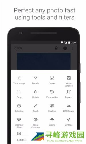 Snapseed手机修图软件是由Google专为移动设备开发的一款专业的图片编辑软件。作为一款专业而全面的照片编辑工具其有着超过29种不同的工具和滤镜,包括修复,画笔,结构,HDR和透视等多种实用的功能。通过这些功能能够优秀拯救废片,再也不用担心拍摄出的图片不符合心意了。当然了还可以自由剪裁图片,将图片剪裁为标准尺寸又或是根据自己的需求剪裁出需求的图片。