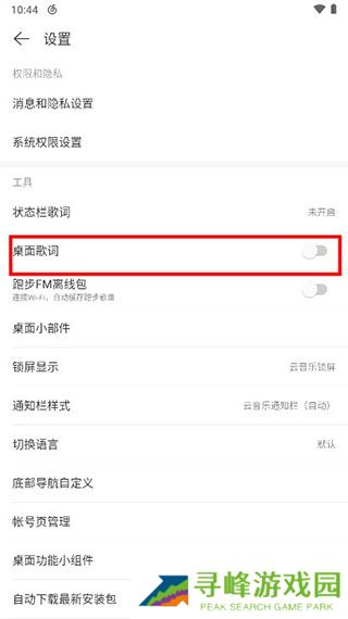 3、进入设置界面后查找“桌面歌词”相关选项。