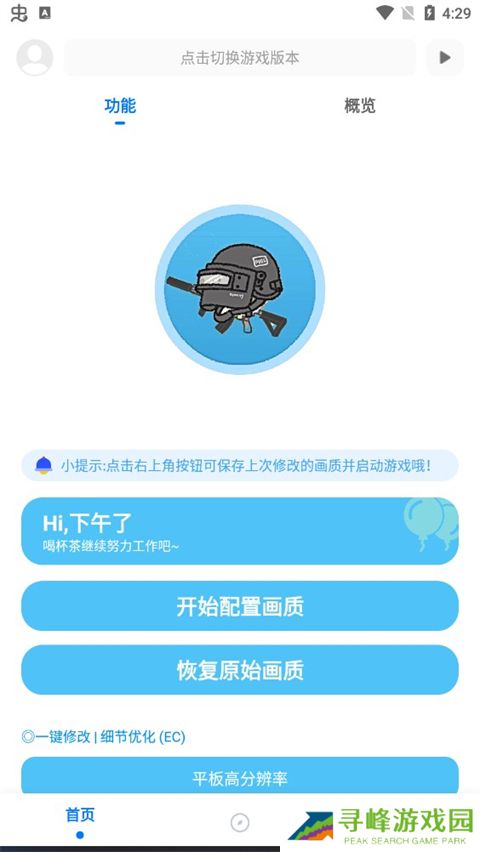 1.界面简洁清晰,各项功能一目了然,用户可一键进入游戏画质调整模式。