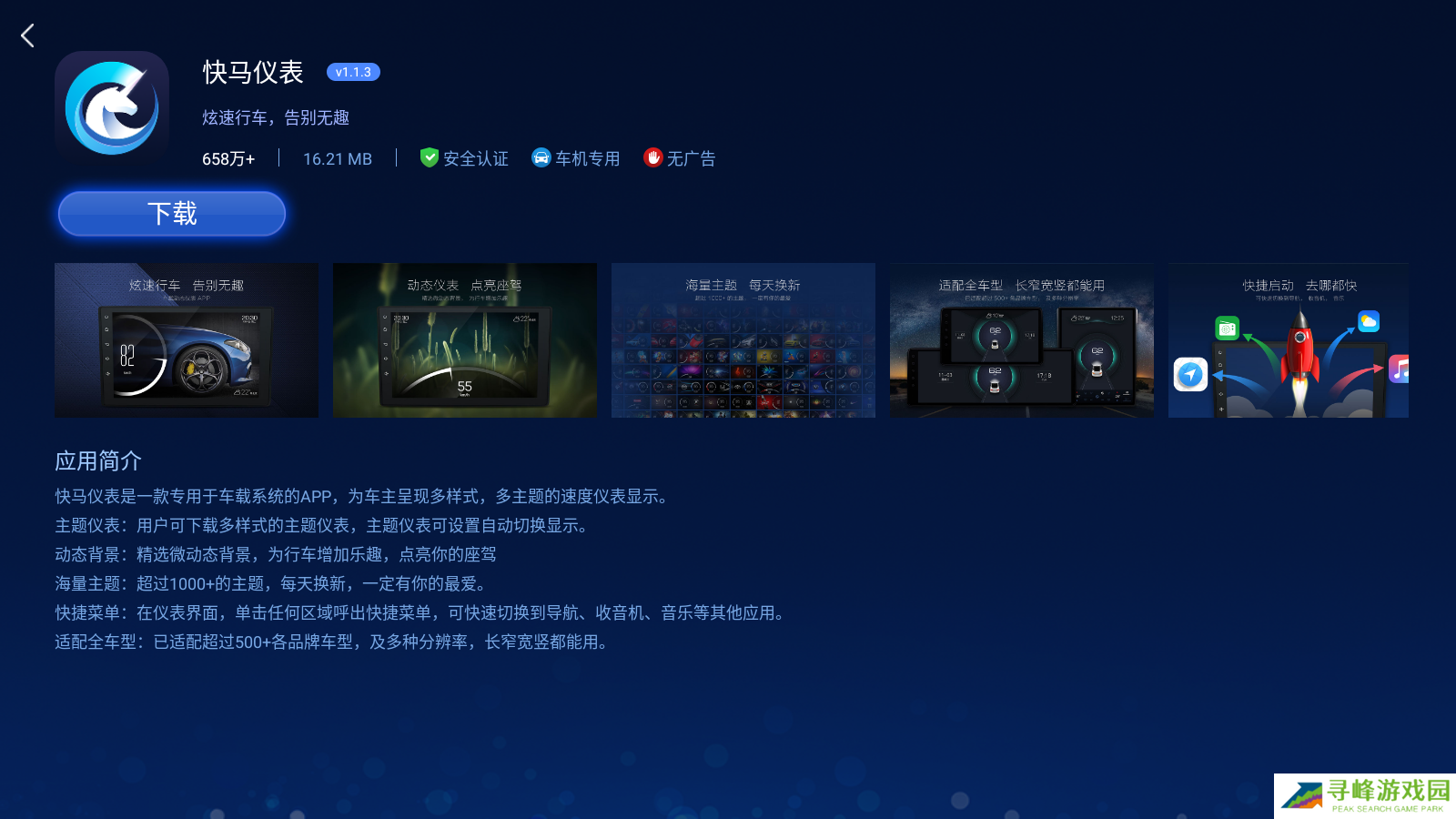 快马市场是针对智能车载智能显示屏打造的应用商店软件,导航、音乐、电话等软件详细分类,一眼即可找到需要的目标软件,为司机们的驾驶生活带去更多便利。所有上架的车机应用都经过车机实机安装运行测试,严格筛选绿色优质的车机软件,车友们可以放心下载。下载软件时自动连接高速下载服务器,依托断点续传技术,在网络不稳定的环境下也能完成软件下载任务。
