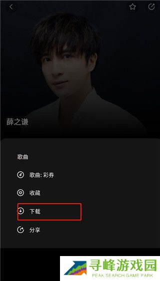 4、点击歌曲右侧的功能按钮,可进行收藏、下载或转发操作,此处以下载为例;