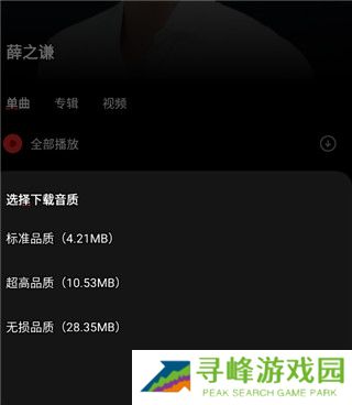 5、在音质选项中,提供三种清晰度供选择,按需下载;