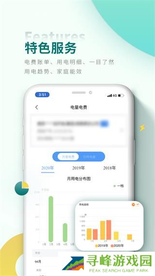 通过图表和日历形式展示近3年(部分地区可能少于3年)的用电总量和明细,便于用户了解用电趋势。