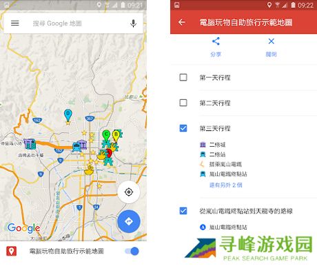 2、使用Google 地图时,还可以切换不同图层,让行程安排更加清晰明了,专注于特定日期的路线安排。