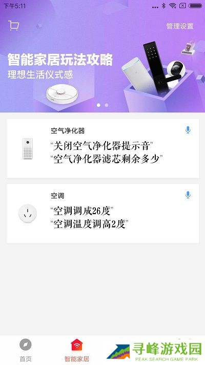 5、智能家居控制:集中展示可联动的小米智能设备,实现语音指令操控家居