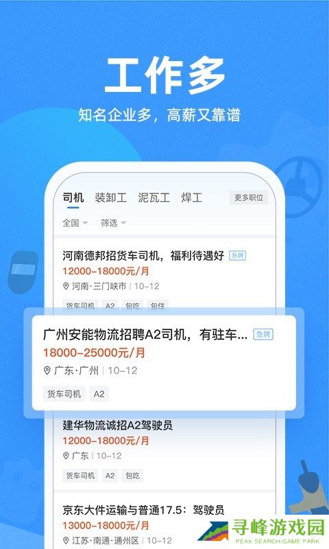专注于司机、押运员、装卸工、快递员等岗位招聘,服务覆盖大量求职者和雇主群体;