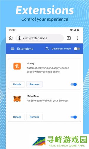 Kiwi浏览器是一款非常好用的安卓手机浏览器,其主要是基于谷歌Chromium内核和WebKit打造,同时它是首款可以防止黑客利用设备挖矿,并且最重要的是,这还是支持Chrome扩展程序的手机浏览器,像谷歌浏览器安卓版就不支持安装扩展程序,这就使许多人度感觉到遗憾,而在该浏览器就完美的为大家解决了这些问题,因此备受大家的喜爱。
