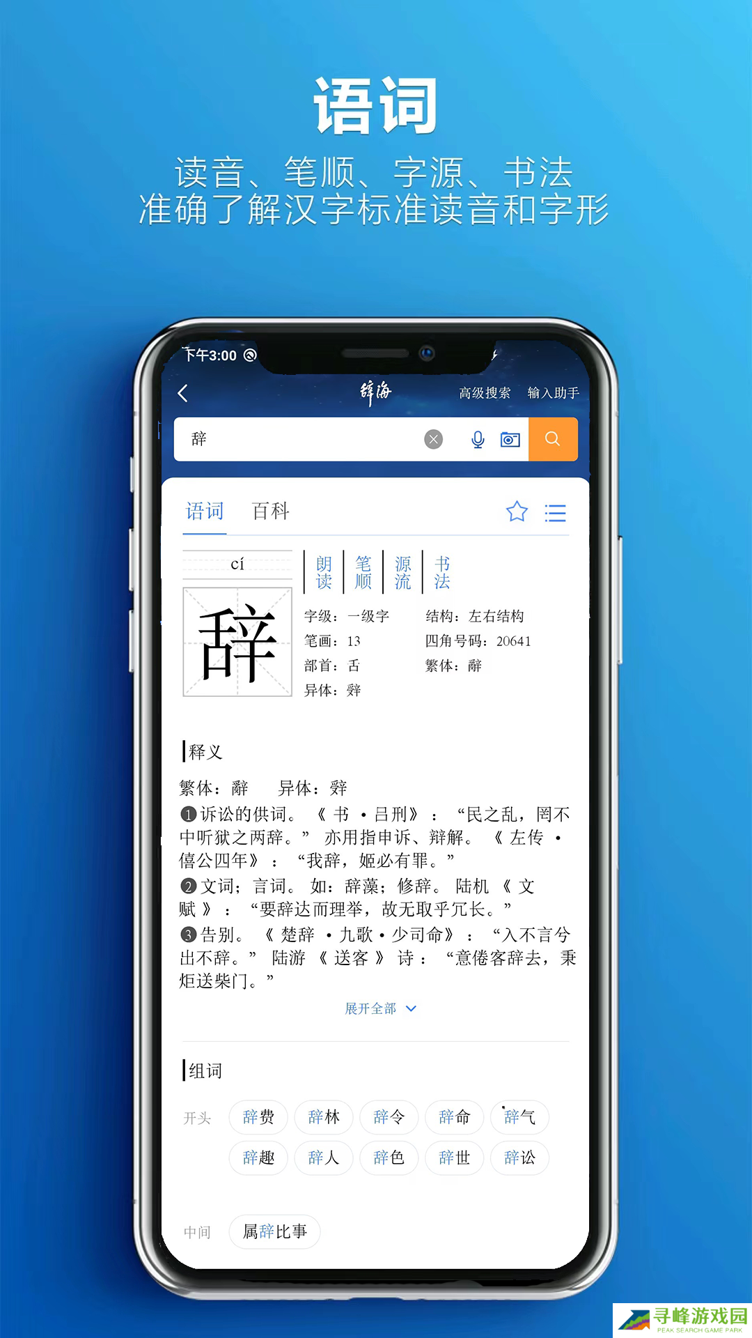 1、辞海拥有数万字词,他是一款学习的神器,同时也是非常好用的查字工具。