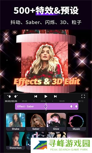 2、100+视频特效一键使用,另有火焰,激光,狂风等动态贴纸。