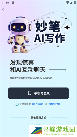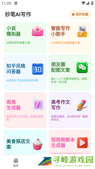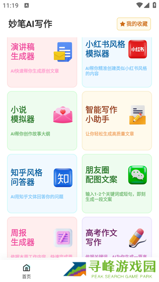1、下载并打开妙笔ai写作应用,进入主界面如图所示;