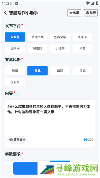 提供了多种文本模板,可以根据不同的行业和领域来生成相应的文章内容。