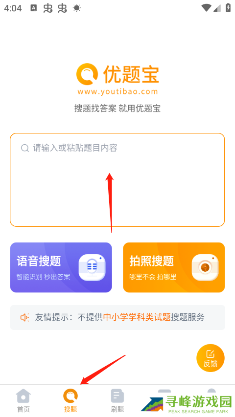 打开应用后进入搜题界面,在输入框中输入题目内容,也可以通过语音或拍照方式完成搜题。