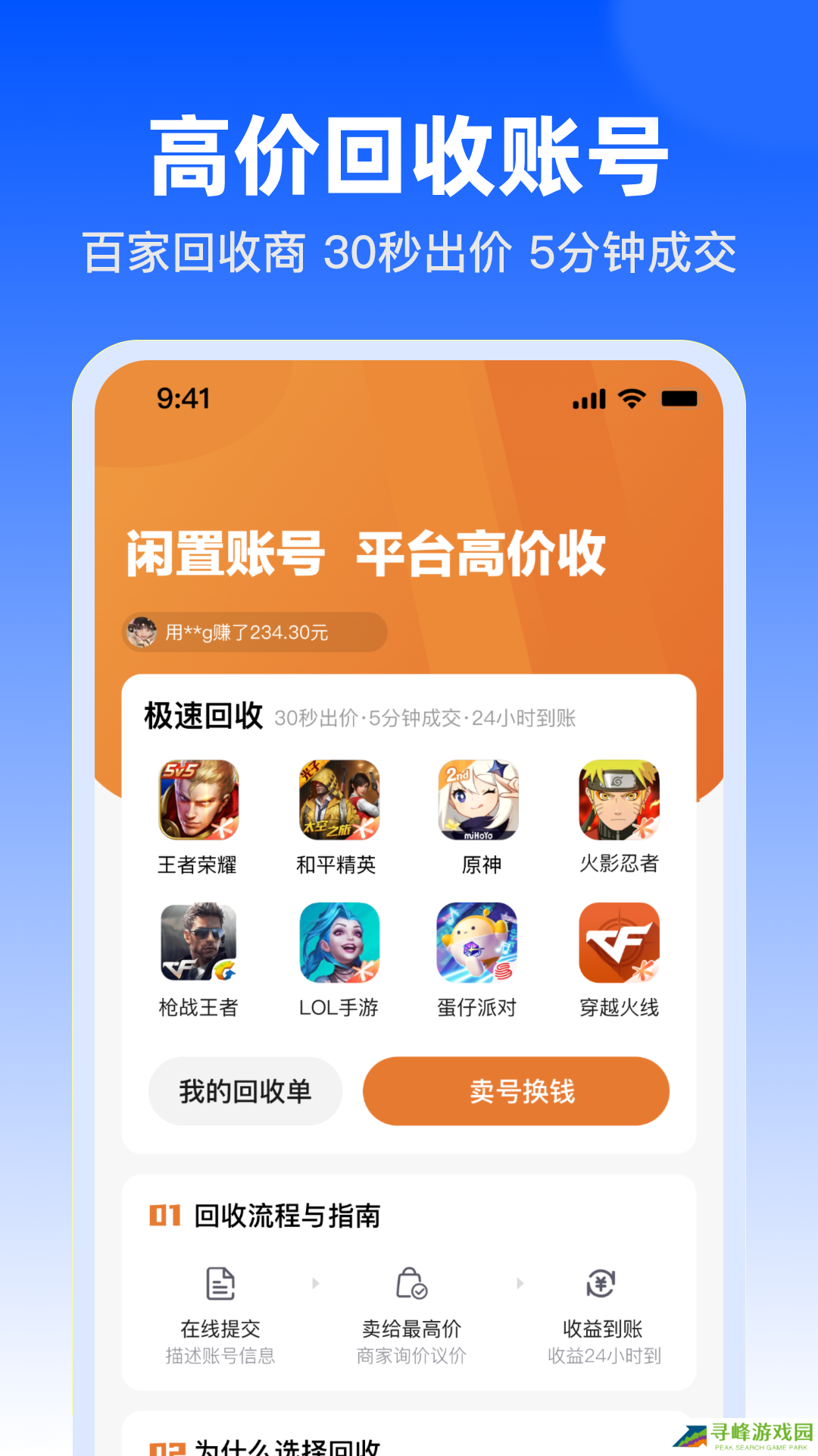 淘号玩是一个主打游戏账号的线上交易平台,和平精英、火影忍者、梦幻西游等上千款热门游戏的精品站好应有尽有,满会员、高段位、全皮肤供你自由选择,而且所有账号都经过团队登录检测,绝对保真。在这里所有玩家都能成为商家,出售的账号直接上传到平台,由资深看号团队免费为账号估价,最快30秒给出详细价格,10分钟即可成交订单,帮助玩家们轻松回血。