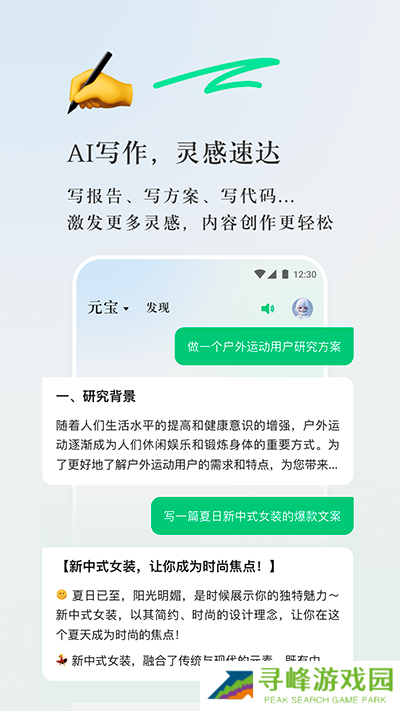 3、具有强大的语言理解和输出能力,您可以用元宝写报告、写方案、写代码等。