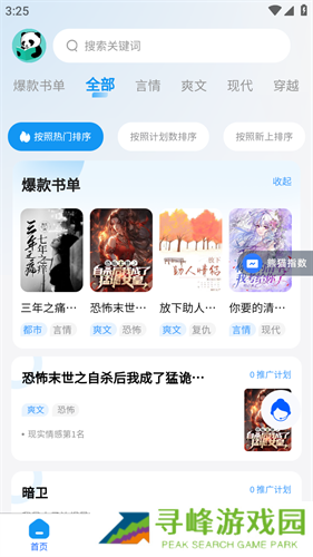 熊猫推书是一款手机免费追书软件,海量精选网文小说供你自由挑选,都市爽文、逆天反转等小说一应俱全,且均由创作者正版授权上架,内容完整无删减,且阅读全程纯净无广告,无需再担心小说因为无版权惨遭下架的问题,打造极致的手机追书体验。